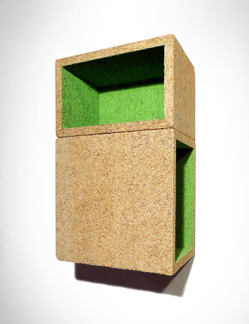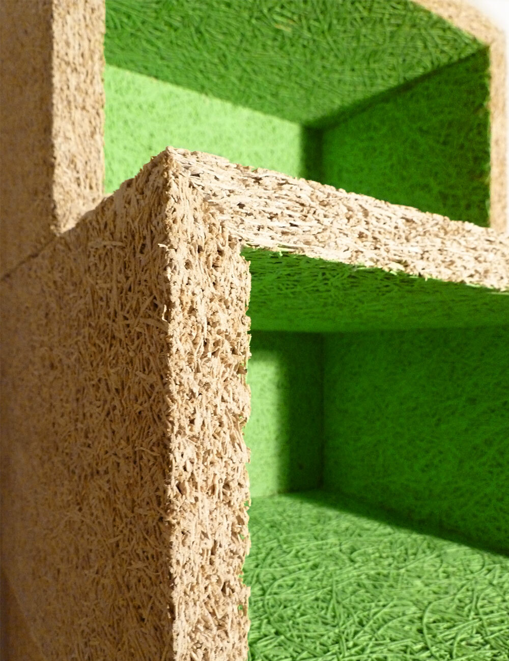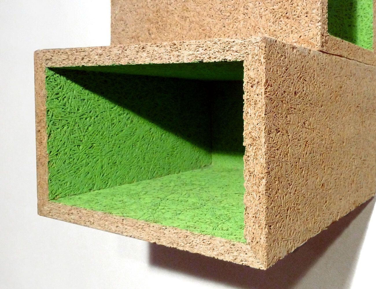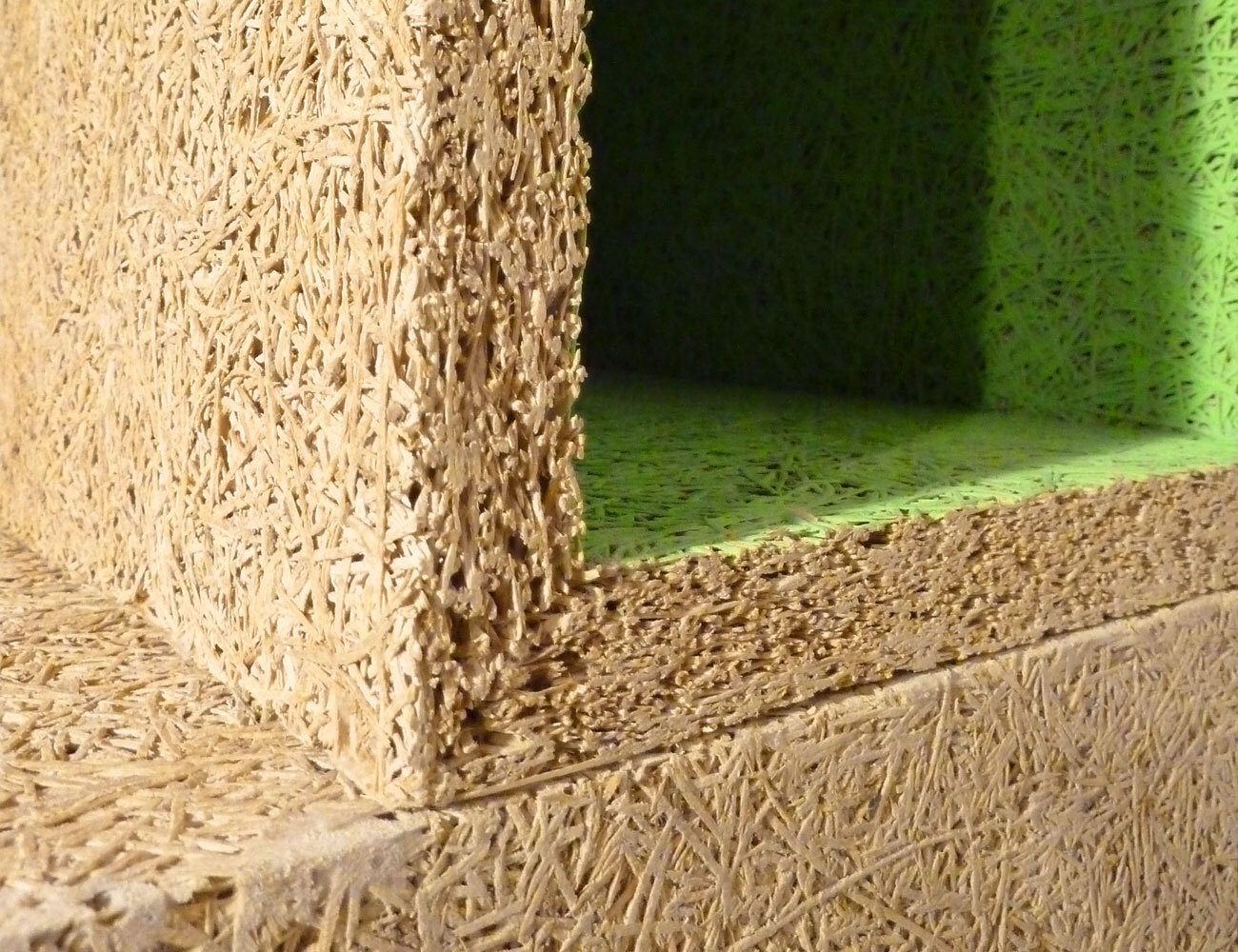 Made of magnesite-bonded wood wool panels which are normally used for acoustic insulation.