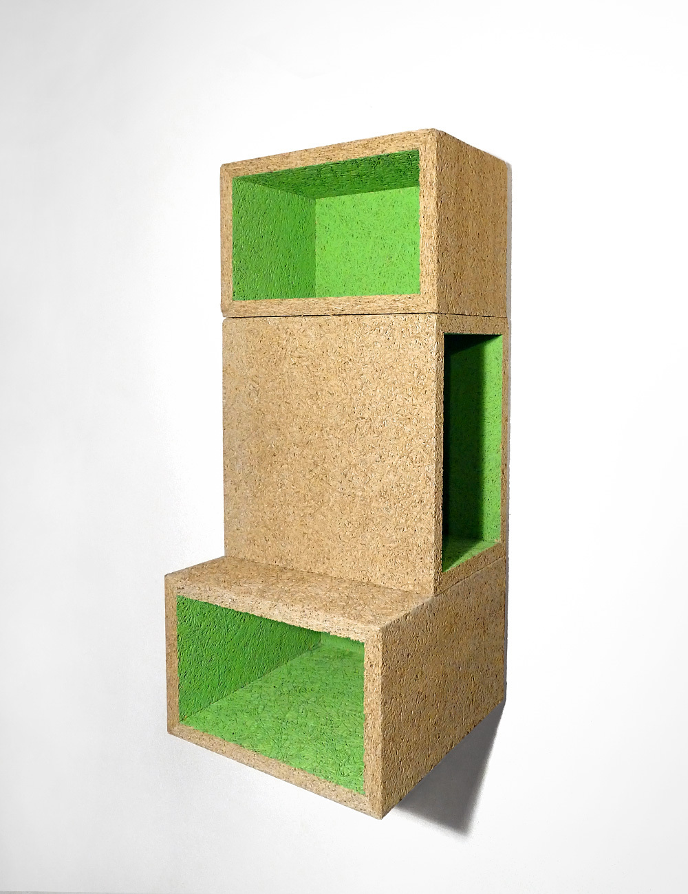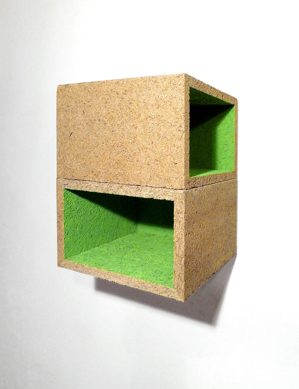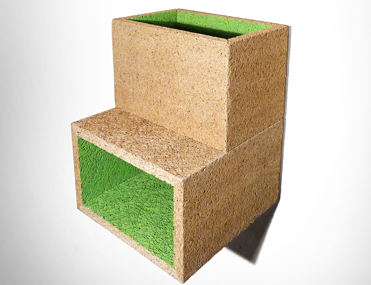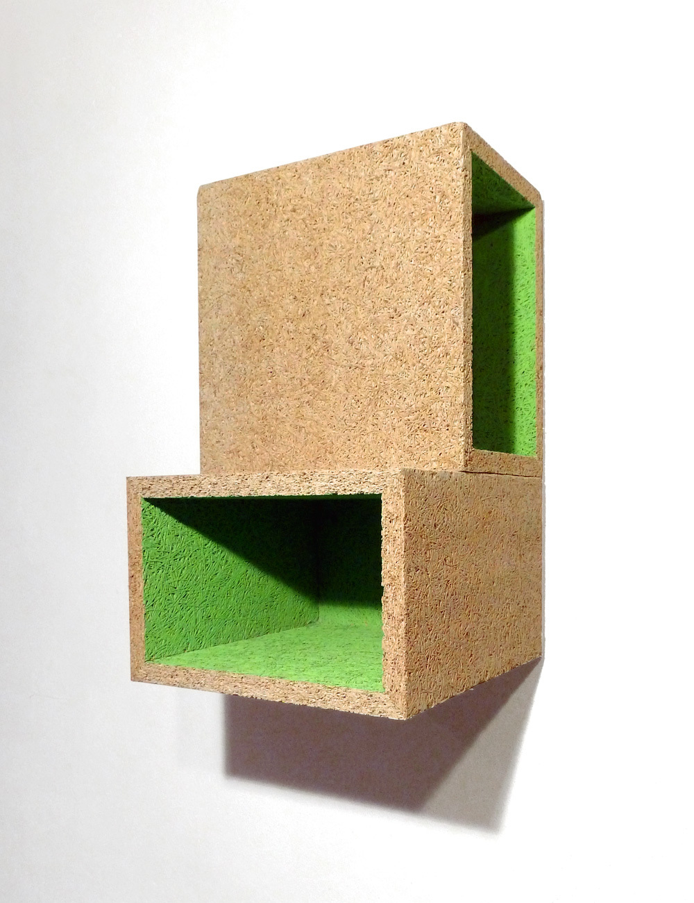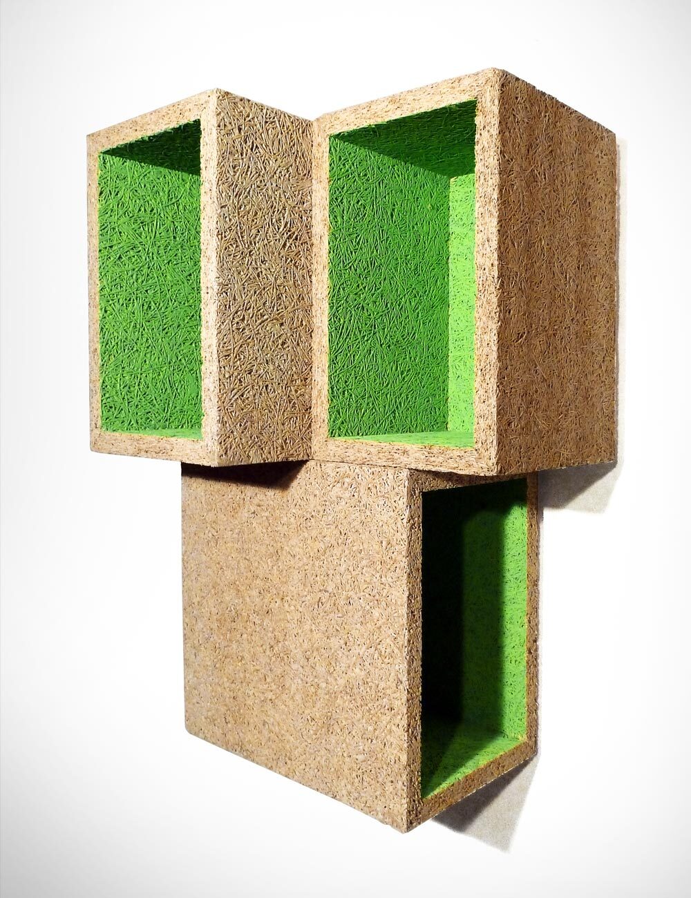 Made of magnesite-bonded wood wool panels which are normally used for acoustic insulation.